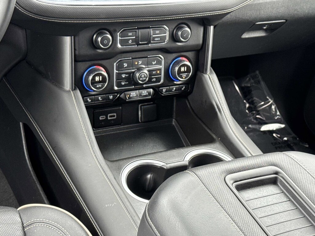 Certified. CHECK OUT ALL THESE GREAT OPTIONS 10 Speakers, 12-Way Power Driver & Passenger Seat Adjusters, 1st & 2nd Row Color-Keyed Carpeted Floor Mats, 2-Speed Active Electronic AutoTrac Transfer Case, 20 x 9 Polished Aluminum Wheels, 3.23 Rear Axle Ratio, 3rd Row 60/40 Power-Folding Split-Bench Seat, 3rd row seats: split-bench, 4-Wheel Disc Brakes, ABS brakes, Adaptive suspension, Air Conditioning, Alloy wheels, AM/FM radio: SiriusXM with 360L, Apple CarPlay/Android Auto, Auto High-beam Headlights, Auto-dimming door mirrors, Auto-Dimming Inside Rear-View Mirror, Auto-dimming Rear-View mirror, Auto-leveling suspension, Automatic temperature control, Bose 10-Speaker Centerpoint Surround Audio Sys Ft, Brake assist, Bright Front & Rear Door Sill Plates, Bumpers: body-color, Chrome Door Handles w/Body-Color Strip, Chrome Mirror Caps, Color-Keyed Carpeting Floor Covering, Compass, Delay-off headlights, Driver & Front Outboard Passenger Airbags, Driver & Front Passenger Heated & Ventilated Seats, Driver door bin, Driver vanity mirror, Dual Exhaust System, Dual front impact airbags, Dual front side impact airbags, Electronic Stability Control, Emergency communication system: OnStar and Chevrolet connected services capable, Enhanced Driver Information Center, Floor Console, Four wheel independent suspension, Front anti-roll bar, Front Bucket Seats, Front Center Armrest, Front dual zone A/C, Front High-Back Reclining Bucket Seats, Front reading lights, Fully automatic headlights, Garage door transmitter, Hands-Free Rear Power Programmable Liftgate, Heated 2nd Row Outboard Seats, Heated door mirrors, Heated Driver & Front Passenger Seats, Heated front seats, Heated rear seats, Heated Steering Wheel, Heated steering wheel, Hill Descent Control, Illuminated entry, Infotainment Display, Lane Change Alert w/Side Blind Zone Alert, LED Daytime Running Lamps, Low tire pressure warning, Magnetic Ride Control Suspension, Memory seat, Memory Settings, Navigation System, Occupant sensing airbag, Outside Heated Power-Adjustable Mirrors, Outside temperature display, Overhead airbag, Overhead console, Panic alarm, Passenger door bin, Passenger vanity mirror, Perforated Leather Seat Trim, Power door mirrors, Power driver seat, Power Liftgate, Power passenger seat, Power Release 2nd Row Bucket Seats, Power steering, Power Tilt & Telescopic Steering Column, Power windows, Premium audio system: Chevrolet Infotainment 3 Premium, Radio: Chevrolet Infotainment 3 Premium System, Rain sensing wipers, Rear air conditioning, Rear anti-roll bar, Rear Cross Traffic Alert, Rear reading lights, Rear window defroster, Rear window wiper, Remote keyless entry, Remote Start, Roof rack: xxxxxx, Safety Alert Seat, Security system, SiriusXM w/360L, Speed control, Speed-sensing steering, Split folding rear seat, Spoiler, Steering wheel memory, Steering wheel mounted audio controls, Tachometer, Telescoping steering wheel, Tilt steering wheel, Traction control, Trip computer, Turn signal indicator mirrors, Universal Home Remote, Variably intermittent wipers, Ventilated front seats, Voltmeter, Wireless Charging, and Wrapped Steering Wheel.